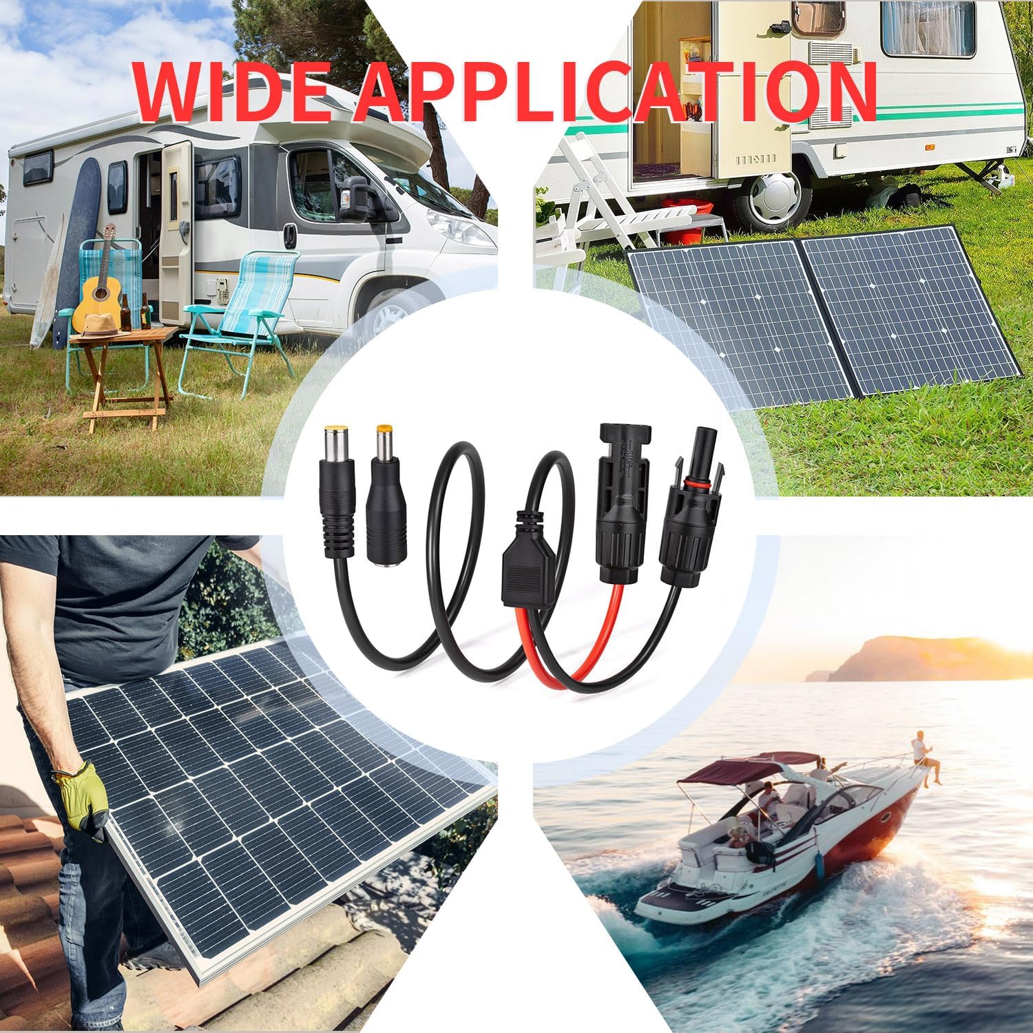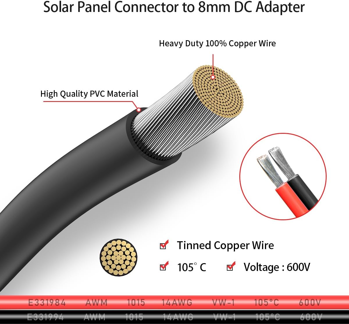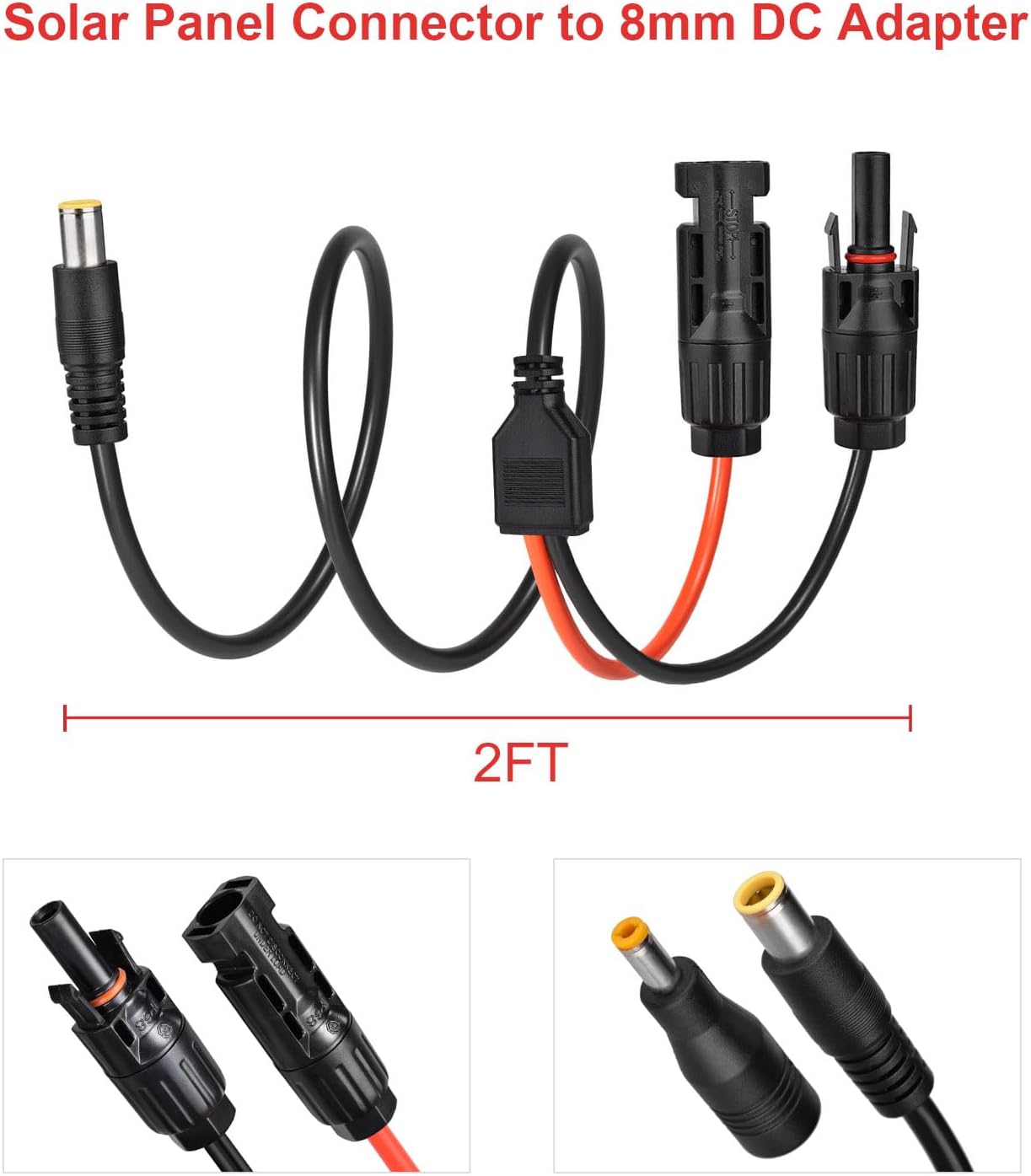 - You will Get: 14AWG 2FT Solar connector to DC 8MM adapter cable & 1*DC 55mm*25mm Male Adapter 24 months friendly customer servic. Please contact us if you have any issue, we will reply and solve within 24 hours.