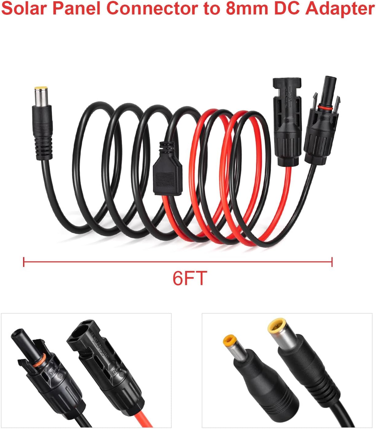 - Solar connector to DC 8MM adapter cable, DC 8MM connector for charging portable power station and solar generator.